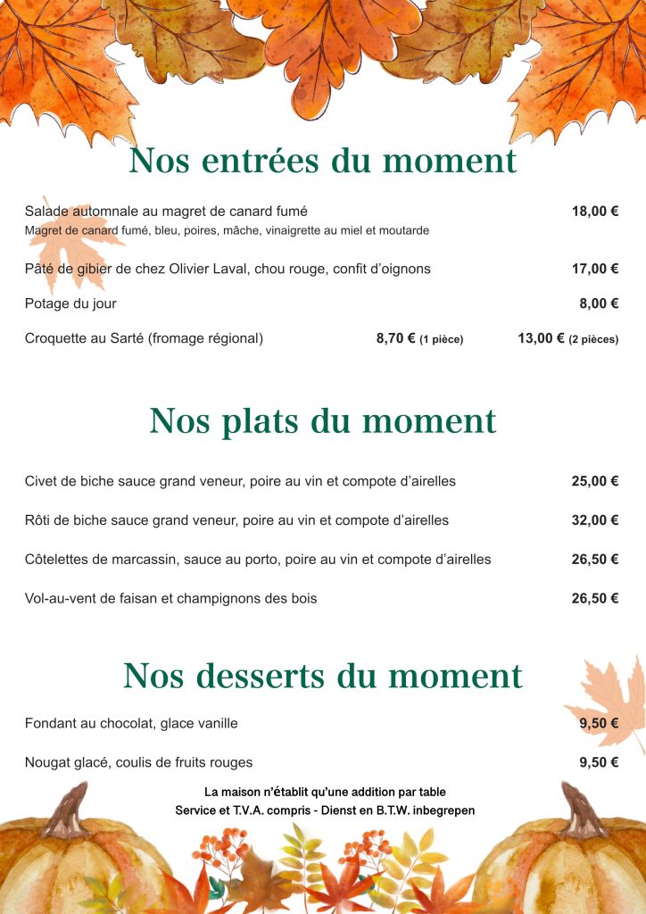 N’hésitez pas à informer notre personnel en cas d’intolérance alimentaire et allergies afin de vous proposer des plats en conséquence.